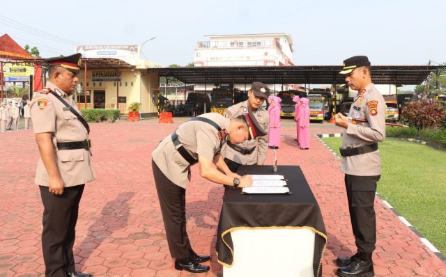 MUBA, LS – Kapolres Musi Banyuasin (Muba) AKBP God Parlasro Sinaga SH SIK MH, memimpin upacara serah terima jabatan (Sertijab) Kapolsek Lais yang berlangsung khidmat di halaman Mapolres Muba, Kamis (26/9/2025).