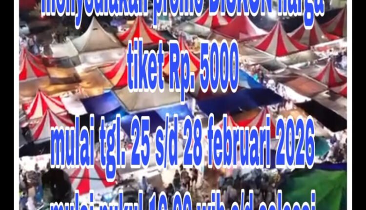 Agus, selaku owner Pasar Malam Doa Ibu, mengungkapkan bahwa pihaknya memberikan diskon khusus harga tiket masuk menjadi hanya Rp5.000. Promo menarik ini berlaku terbatas mulai tanggal 25 hingga 28 Februari 2026.