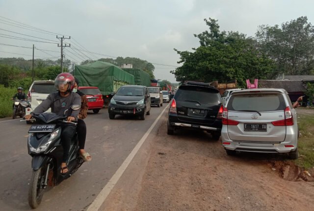 Menurut keterangan Jamin (39), sopir truk muat buah sawit dari arah Sungai Lilin menyebutkan, sejak pagi truknya rusak pecah ban dan parkir di pinggir jalan.