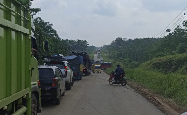 MUBA, Liputansumatera.com – Macet panjang di jalan lintas Tungkal Jaya – Sungai Lilin Kabupaten Muba yang disebabkan terjadinya insiden kecelakaan membuat kendaraan yang melintas banyak terhenti, Senin (26/6/2023).