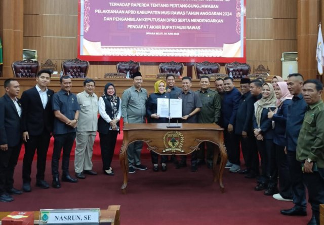 Persetujuan ini disampaikan anggota DPRD Musi Rawas melalui juru bicara masing-masing komisi dalam rapat paripurna DPRD Kabupaten Musi Rawas dengan agenda mendengarkan Laporan Hasil Pembahasan Komisi – Komisi DPRD terhadap Raperda tentang Pertanggungjawaban Pelaksanaan APBD Kabupaten Musi Rawas Tahun Anggaran 2024 dan Pengambilan Keputusan DPRD serta Mendengarkan Pendapat Akhir Bupati Musi Rawas, Senin (30/6/2025).