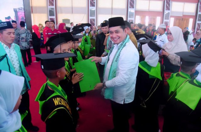 “Alhamdulilah, seperti biasa disetiap tahun memang akan ada santri yang diwisuda. Baik yang tamat dari TPA maupun Tahfidz Juz 30. Dan tentunya ini sebagai wujud kita dalam menciptakan generasi muda santriawan / santriwati pecinta Al-quran,” ujar orang nomer satu di Bumi Sedulang Setudung ini.