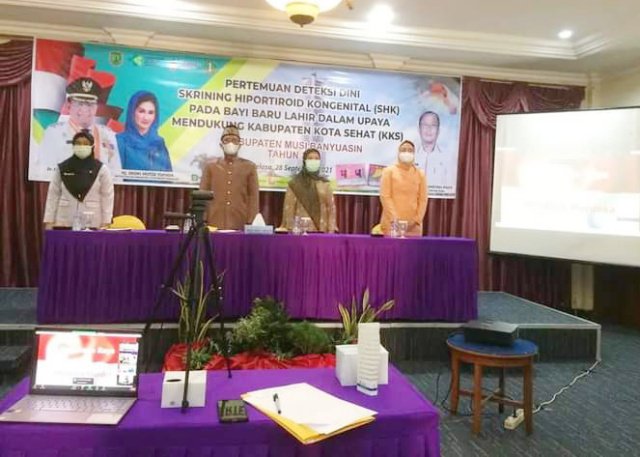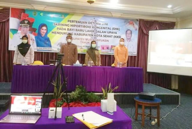 MUBA, Liputansumatera.com –Pemerintah Kabupaten Musi Banyuasin (Muba) melalui Dinas Kesehatan Muba, menggelar pertemuan Deteksi Dini Skrining Hipotiroid Kongenital (SHK) pada Bayi Baru Lahir dalam upaya mendukung Kabupaten Muba Sehat di Ruang Pertemuan Hotel Ranggonang dan secara virtual melalui zoom, (28/9/2021)