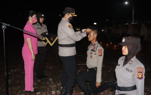 Acara ditandai dengan pemasangan baret khas Samapta secara simbolis oleh Kapolres OKU Selatan AKBP Indra Arya Yudha dan Ketua Bhayangkari Cabang OKU Selatan Aryanti Indra Arya kepada 2 perwakilan bintara remaja pada Rabu Malam (3/8/2022).