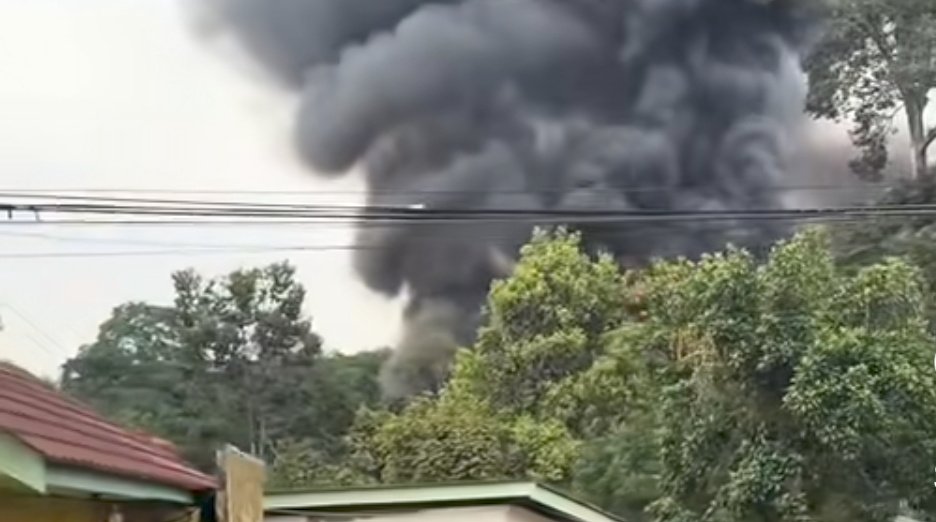 Dalam video yang dibagikan tersebut, dalam kerumunan warga, terdengar teriakan histeris warga sekitar. Api dan asap hitam pekat membumbung tinggi melebihi pepohonan disekitarnya.