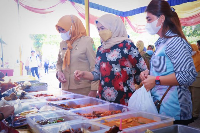 Ditandai dengan pengguntingan pita oleh Wakil Ketua I TP PKK Kabupaten Muba Susy Imelda Beni. Pasar yang menjual berbagai macam menu berbuka puasa ini dipusatkan di Halaman Parkir Eks Penjara Depan Gedung DWP Sekayu, Senin (4/4/2022).