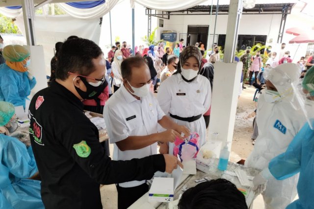 Hadir langsung meninjau kegiatan swab dan vaksinasi Sekretaris Daerah Kabupaten Muba Drs H Apriyadi MSi didampingi Kepala Dinas Kesehatan dr Azmi Dariusmansyah MARS. Kepala Dinas Perdagangan dan Perindustrian Azizah SSos MT serta Tim Satgas dari BPBD Muba, Kapolsek Sekayu M Akib, Koramil Sekayu, Sat Pol PP Muba, Camat Sekayu diwakili Sekcam, Kepala Puskesmas Lumpatan Lismawati dan Kepala UPTD Pasar Yustika.