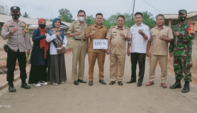 Terpantau, Senin (6/6/2022) Camat Betung M Sobir SSos bersama Kepala Desa Bukit Ivan Juniarsyah SH, Babinsah, Bhabinkamtibmas, Kasi PPDK dan PDL PD, meninjau langsung pembangunan 100 persen jalan tersebut.