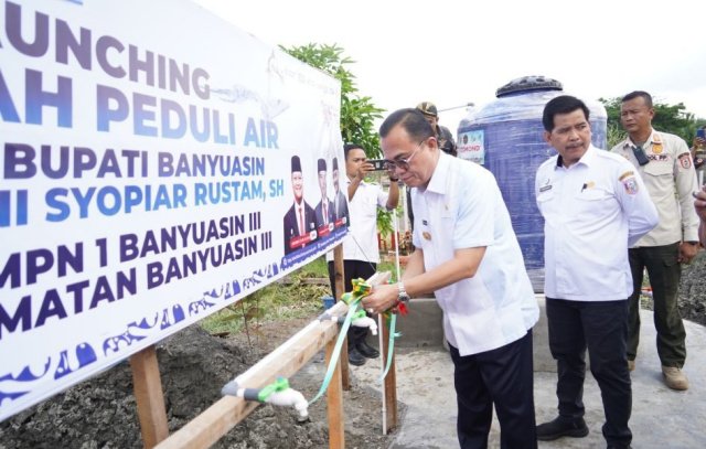 BANYUASIN, LS – Usai melakukan sidak ke RSUD Sukajadi dan Operasi Pasar di Kecamatan Sembawa, Pj Bupati Banyuasin H Hani Syopiar Rustam SH kembali melaunching Sekolah Peduli Air kedua di Kabupaten Banyuasin sekaligus peletakan batu pertama pembangunan pagar SMP N 1 Banyuasin III, Rabu (20/12/2023).