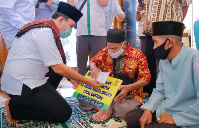 Dihadirkan Penceramah agama Dr H Royhan Sabukti dari Ponpes Roidatul Ilmi Jakarta. Pada kesempatan tersebut juga secara simbolis Plt Bupati Beni menyerahkan bantuan santunan kepada kaum Dhuafa Rp 300.000 untuk 50 orang dan penyerahan bantuan sembako program ASN Peduli dan bantuan Perusahaan yang beroperasi di wilayah Kecamatan Lais. (sur/soe)