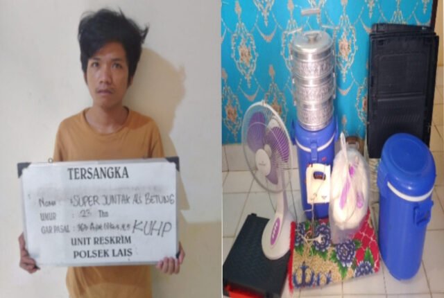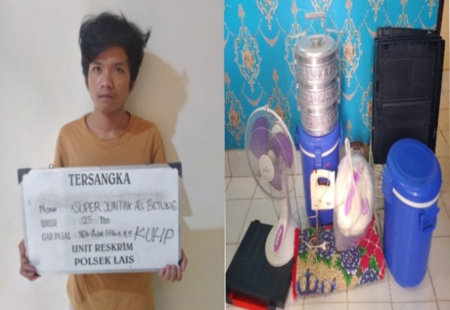 Unit Reskrim Polsek Lais Polres Musi Banyuasin Polda Sumatera Selatan, berhasil mengungkap kasus tindak pidana pencurian dengan pemberatan yang dilakukan tersangka Super Juntak alias Betung (23) warga Dusun II Desa Petaling Kecamatan Lais Kabupaten Musi Banyuasin (Muba), (11/12/2022).
