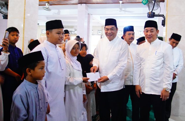 Selain agenda silaturahmi, acara ini juga diwarnai dengan penyerahan bantuan sosial secara simbolis sebagai bentuk kepedulian pemerintah di bulan suci. Bantuan tersebut meliputi pembagian paket sembako bagi 30 warga miskin serta paket kain mukena untuk 50 kaum perempuan. Selain itu, perhatian khusus diberikan pada aspek keagamaan dan kesejahteraan sosial melalui penyerahan santunan uang tunai kepada 15 anak yatim, serta insentif khusus bagi guru ngaji dan marbut. Sebagai bentuk dukungan terhadap infrastruktur ibadah, diserahkan pula bantuan dana sebesar Rp10 juta untuk pembangunan Masjid Jami’ At-Taqwa.