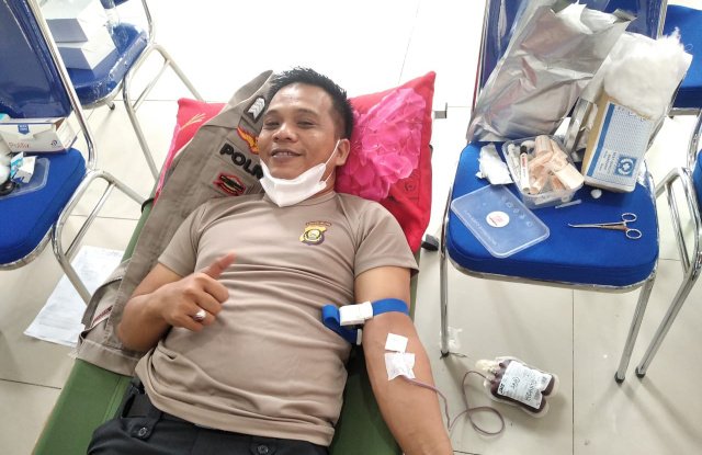 “Ini kegiatan donor darah dalam rangkaian HUT Bhayangkara, semoga dapat bermanfaat bagi pendonor darah karena donor darah dapat merangsang terjadinya proses peremajaan sel sel darah, hal ini baik bagi kesehatan,” jelas Satria.