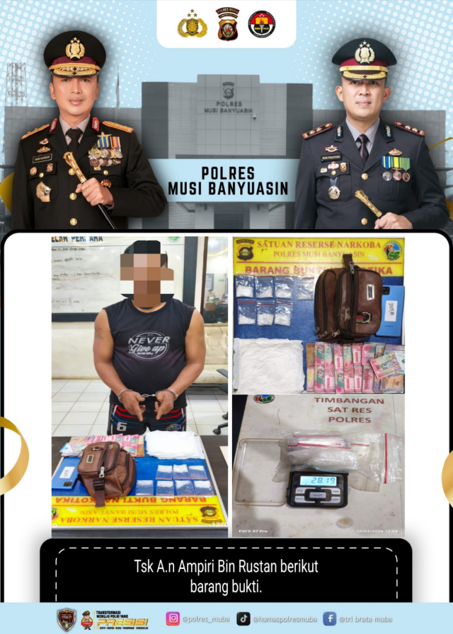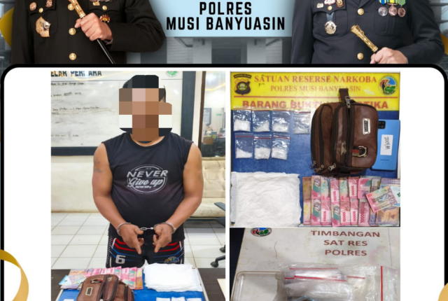 MUBA, LS – Satresnarkoba Polres Musi Banyuasin (Muba) berhasil mengungkap dua kasus peredaran narkotika jenis sabu dalam waktu berdekatan. Dari dua penangkapan tersebut, polisi mengamankan total barang bukti sabu seberat 30,42 gram serta dua orang tersangka yang diduga sebagai pengedar.