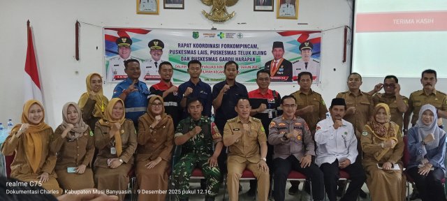 MUBA, LS – Forum Koordinasi Pimpinan Kecamatan (Forkopimcam) Lais Kabupaten Musi Banyuasin (Muba), menyelenggarakan Rapat Koordinasi dan Evaluasi Kinerja Triwulan IV Tahun 2025 di Aula Kantor Camat Lais, Selasa (9/12/2025).
