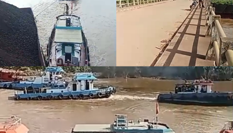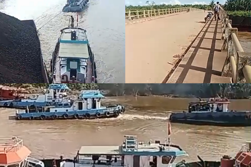 Video Amatir Rekam Detik-Detik Tongkang Batubara Hantam Jembatan Penghubung PTPN Bentayan