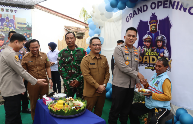 Kapolres Muba AKBP Ruri Prastowo SH SIK MIK usai grand opening Kedai Padek, Selasa (21/4/2026) mengatakan, kegiatan tersebut merupakan salah satu upaya Polres Muba mendekatkan diri kepada masyarakat, kali ini dengan menggandeng rekan rekan driver ojek di Sekayu.